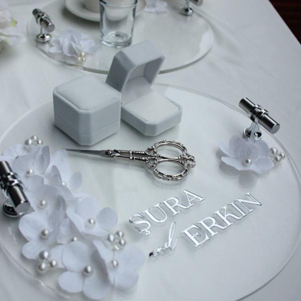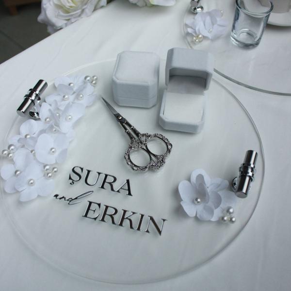 - 30 cm pleksi yüzük tepsisi ve kahve tepsisi