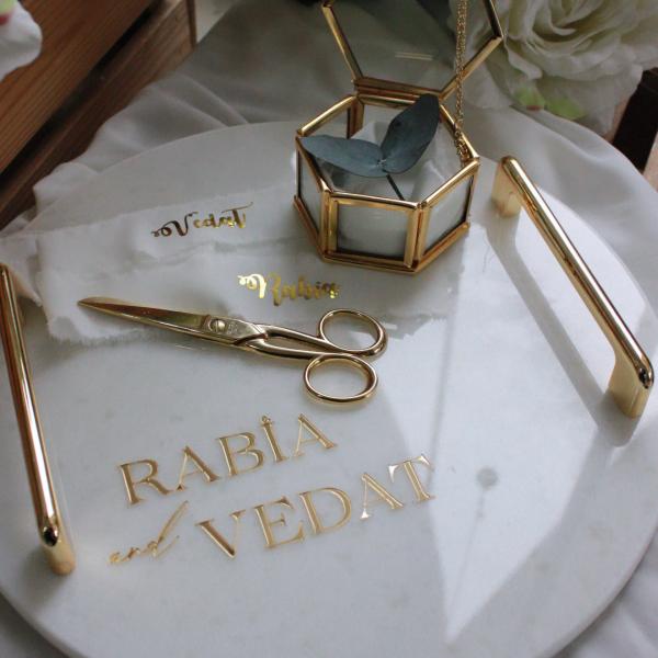 - Kulpları yazı detayı , gold detaylı makası ve cam yüzük kutusu ile gönderilecektir